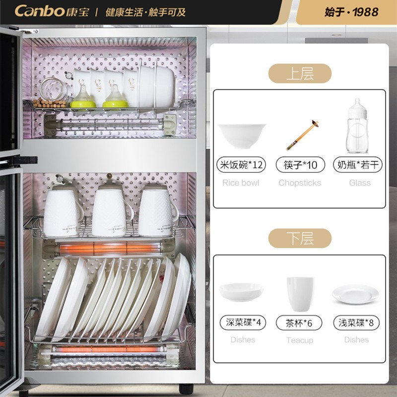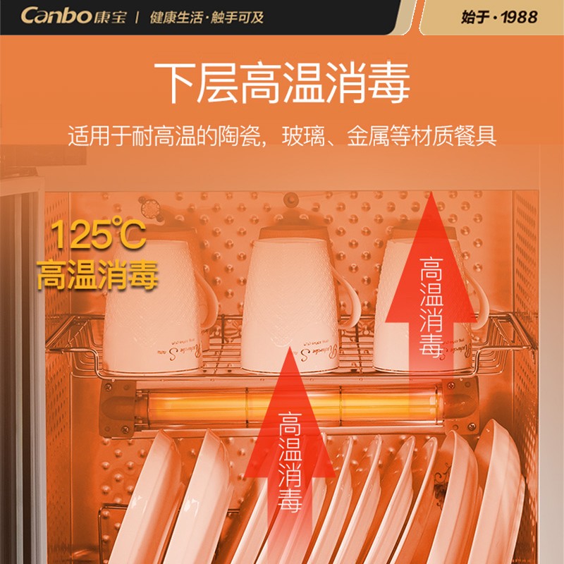 Canbo 康宝 XDR70-T18P2 消毒柜 高温瞬杀,360度无忧灭菌,让每一餐都新鲜洁净,国标二星级,有效灭杀细菌,温度看得见才放新,消毒全程温度实时监控。