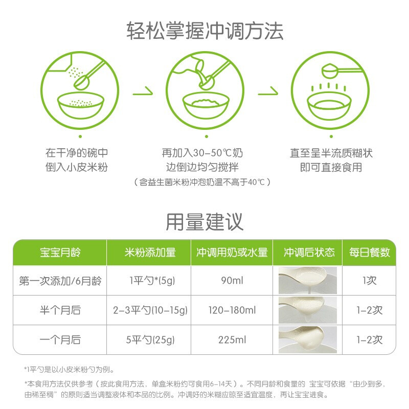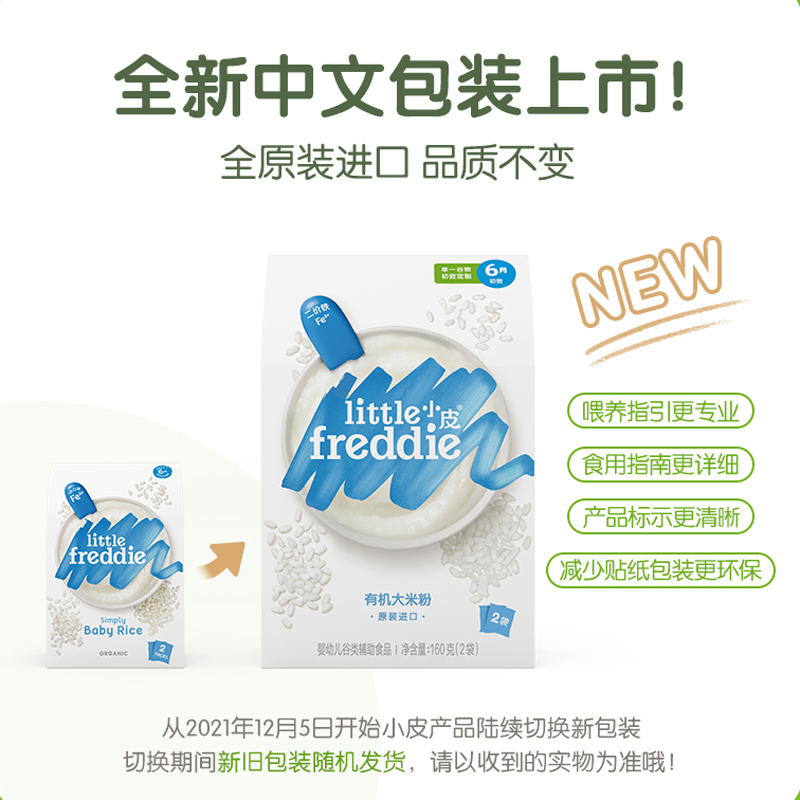 LittleFreddie小皮 婴幼儿大米粉 不添加防腐剂、人工香精,无转基因成分,意大利波河三角洲大米,用纯净山泉水灌溉,浓浓的米香,细腻易消化,是宝宝初次添加辅食不错的选择,适合6个月以上的宝宝食用。