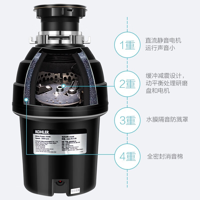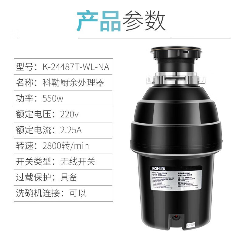 KOHLER 科勒 K-24487T-WL-NA 垃圾处理器 强劲动力,垃圾变成水,550W大功率,垃圾处理器领导者,厨房好帮手,一键清厨余,无线开关方便快捷,多重降噪低音运行,采用高品质隔音材料,包裹性封闭。
