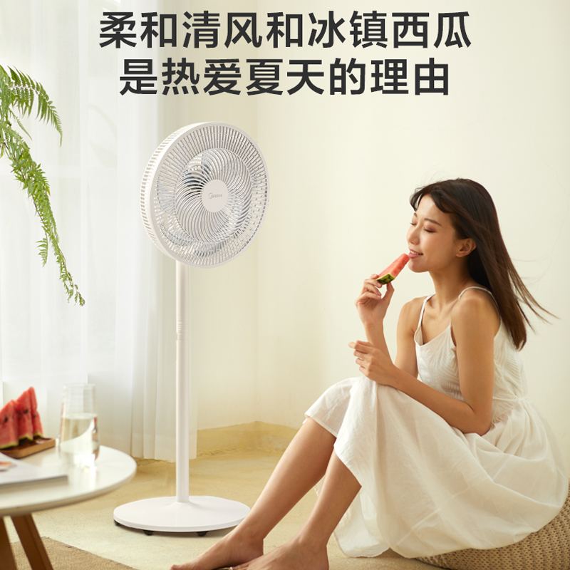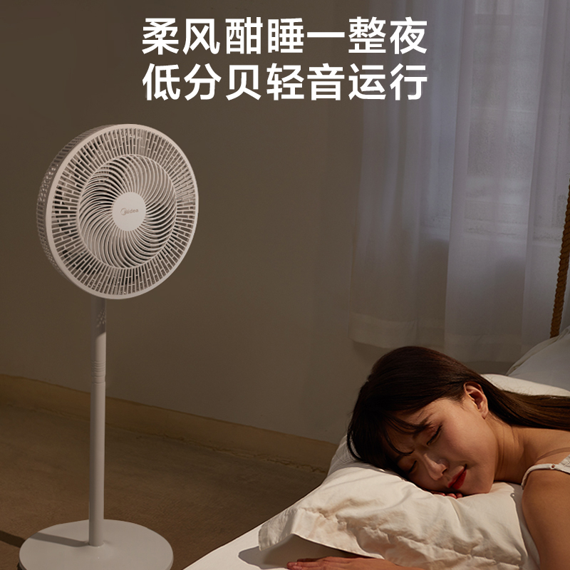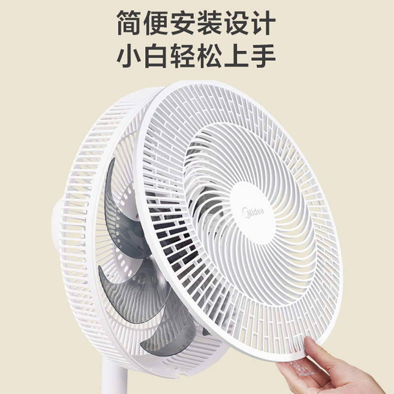 高品质电机,长达10年质保,至强内核电机,品牌核心价值采用美的新一代高性能铜芯电机,使用寿命比上一代明显提升,双段反螺旋网罩,风吹更远的秘密,10MM收敛式加速通道提高风速,扩风导流降低噪音,采用轻韧性材质,降低气流絮乱产生的噪音,享受真正的柔风细“无”声。