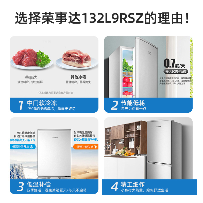 当前的位置: 首页 > 今日值得买 > 荣事达(Royalstar)双门电冰箱小型家用静音节能冷藏冷冻冰箱宿舍租房迷你保鲜小冰箱 132L 9RSZ 银色