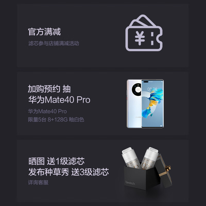 5级深度净化,有效滤除水中有害物质,搭载碧云泉新一代反渗透RO膜,净化效果深达0.0001微米,从源头上抑制过滤中的污染可能,有效滤除水中的重金属、细菌、病毒、 微生物、硝酸盐、三氯甲烷、四氯化碳等有害物质,达到 国家直饮水要求,纯净鲜活,放心直饮。