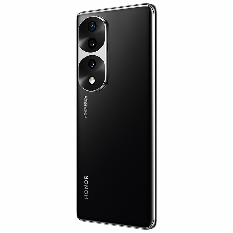 荣耀70 Pro+此次共有、亮黑色、薄雾金沙、墨玉青三种配色,全对称四曲面设计,面轮廓度差异小于0.1mm,正面则采用了一块6.78英寸的120Hz OLED的流光四曲屏,10bit色深,支持1920Hz高频PWM调光。