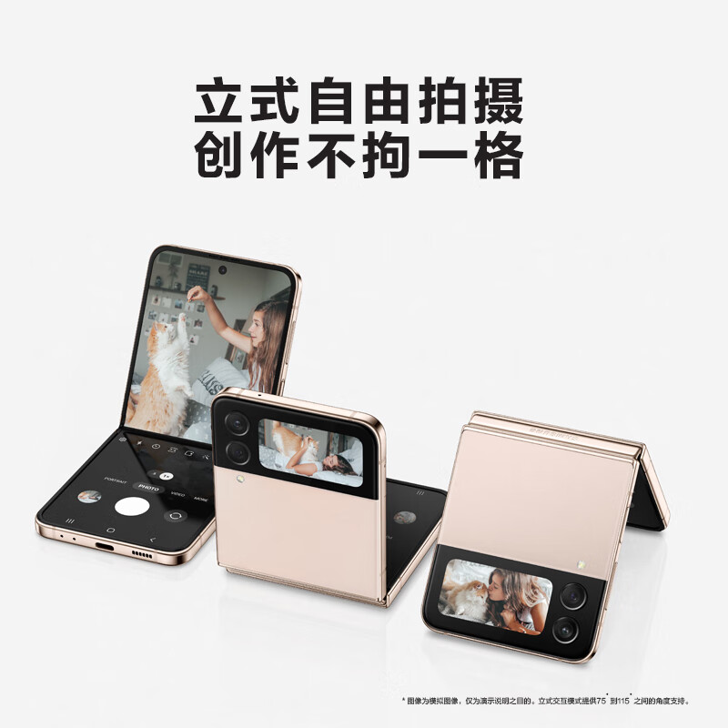 三星Galaxy Z Flip4的整体设计与系列一脉相承,“翻盖”式的掌心折叠带来了精致与小巧,闭合时仅有手掌般大小,放在口袋里刚好合适,非常便于携带。背板配备了康宁大猩猩 Victus+玻璃,边框采用坚固的铝合金框予以加固,确保手机安全,提供幽紫秘境、哥特太空、繁樱花园和蓝海假日4个配色,整机展开薄约6.9mm,重263g。