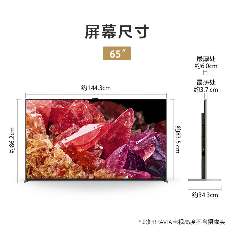 索尼 XR-65X95EK 液晶电视,E代表搭载BRAVIA摄像头的版本,能够进行AI环境感知,根据观看距离自动调整画面亮度和声音平衡。X95EK为索尼首款加入了Mini LED背光技术的电视,拥有数千个Mini LED芯片,数百的背光分区,带来更精细的画质明暗细节;峰值亮度也高达1500nits,带来接近真实环境的光影效果;搭载了索尼独家研发的新一代XR认知芯片,在影像处理、音效、控光等技术方面都做出了巨大的优化;DCI-P3色域达到95%,拥有很好的色彩表现;游戏方面,采用120Hz高刷屏,HDMI2.1接口,支持VRR和ALLM,告别游戏拖影和延迟;还首次加入了摄像头,提供更多应用拓展。