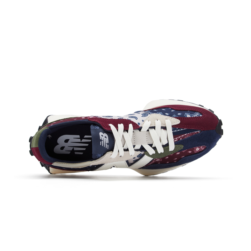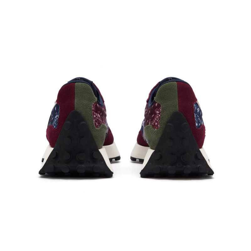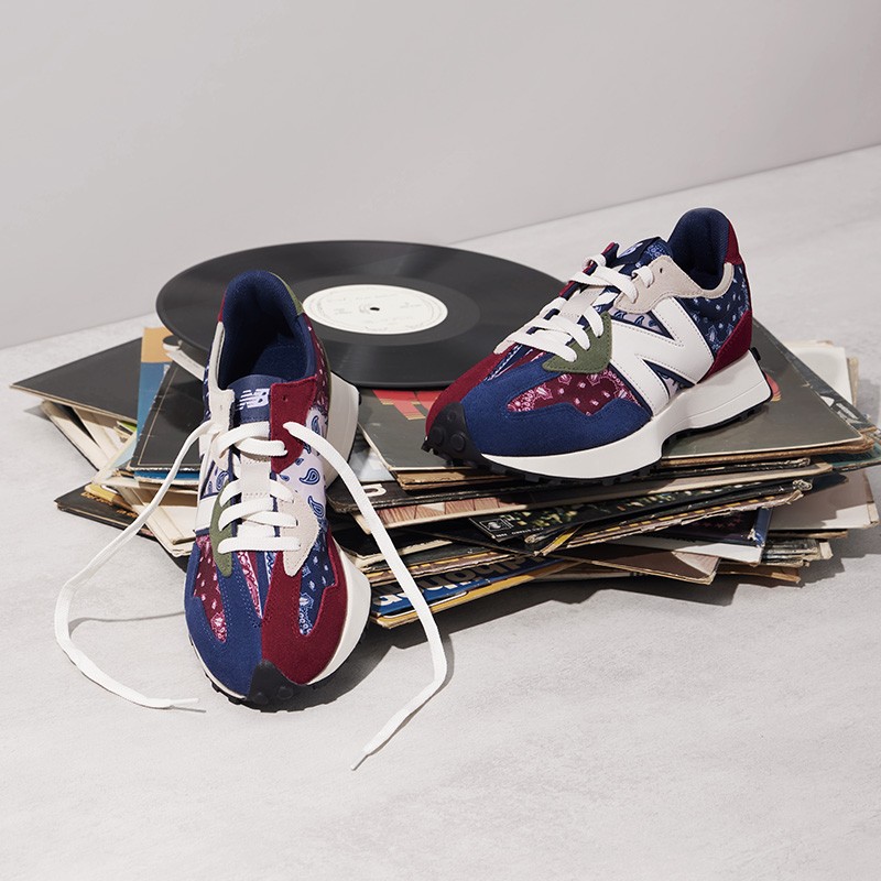 New Balance大热经典327鞋款以70年代竞速跑鞋为蓝本,集320、355、Super Comp三双经典鞋款之大成,充分吸收与运用优质鞋型元素。颗粒橡胶大底提升抓地力,爪纹式前掌裁片配置与包裹式足跟则带来更舒适的穿着体验。并采用了拼接剪裁设计,将Paisley腰果花图案镶嵌入经典327鞋款中,彰显出复古质感与经典品味的碰撞。