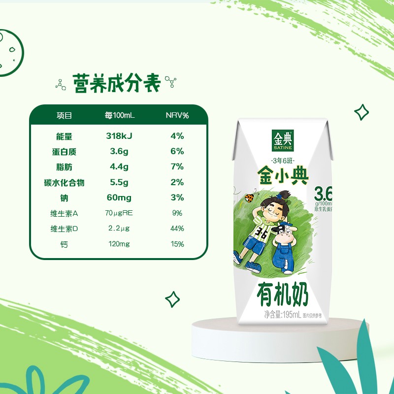 金典牛奶诞生于2006年,作为伊利液体奶的首个高端副品牌;自上市起,即秉承奉献最佳品质的理念,致力打造中国“最好的牛奶”,金典有机奶唱享健康有机新生活,蛋白质含量比灭菌乳国家标准最低要求增加27%。这款3年6班金小典有机奶添加苹果味,果香清冽,滴滴醇正,口感醇香,奶味十足。规格:195ml*16盒。