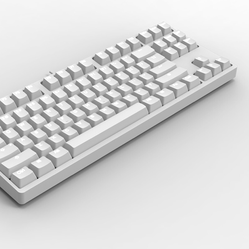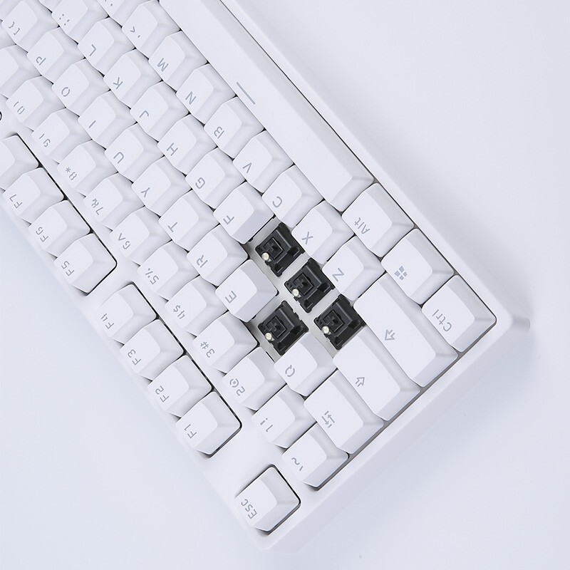 这款 GS87D 使用了PBT热升华键帽,87键布局,阶梯式的键帽布局符合人体工程学,整体设计简约,不具有背光功能(但键盘内预留了灯位和焊锡,也是很溜的操作),轴体来自Cherry,蓝牙模式下可连接五设备、自由切换,有线模式为TypeC接口,是一款朴素的基础款机械键盘。