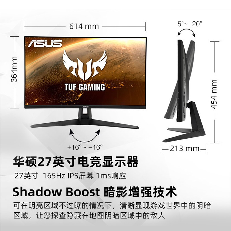 华硕 TUF Gaming VG279Q1A 配备27英寸和Full HD (1920x1080) IPS 电竞显示器,配备 165Hz疾速刷新率,专为职业玩家及沉浸式游戏而打造。