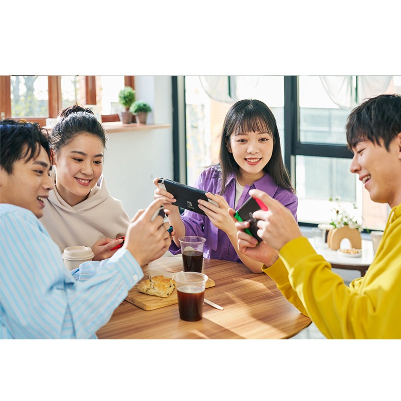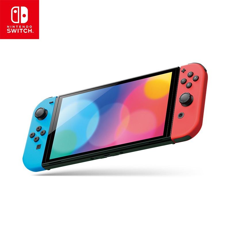 OLED版机型显示屏配备7寸OLED屏幕,边框更窄尺寸更大。每一颗像素都自发光,即使在光线明亮的环境下游玩,画面依然清晰锐利。OLED款主机背部使用了转轴大支架,调整角度更广,支撑稳定度极大提升;扬声器经过了全新设计,音效更加逼真;机身存储容量由32G增大为64G,能够存储更多的游戏资料以及截图录像;底座背部USB接口替换为有线网口,连线更稳定。