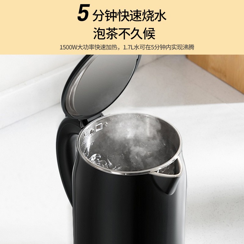 当前的位置: 首页 > 今日值得买 > 美的(Midea) 电水壶热水壶烧水壶家用双层防烫无缝内胆快速沸腾1.7L大容量 304不锈钢开水壶 黑武士水壶 高颜值丨SH17M301b