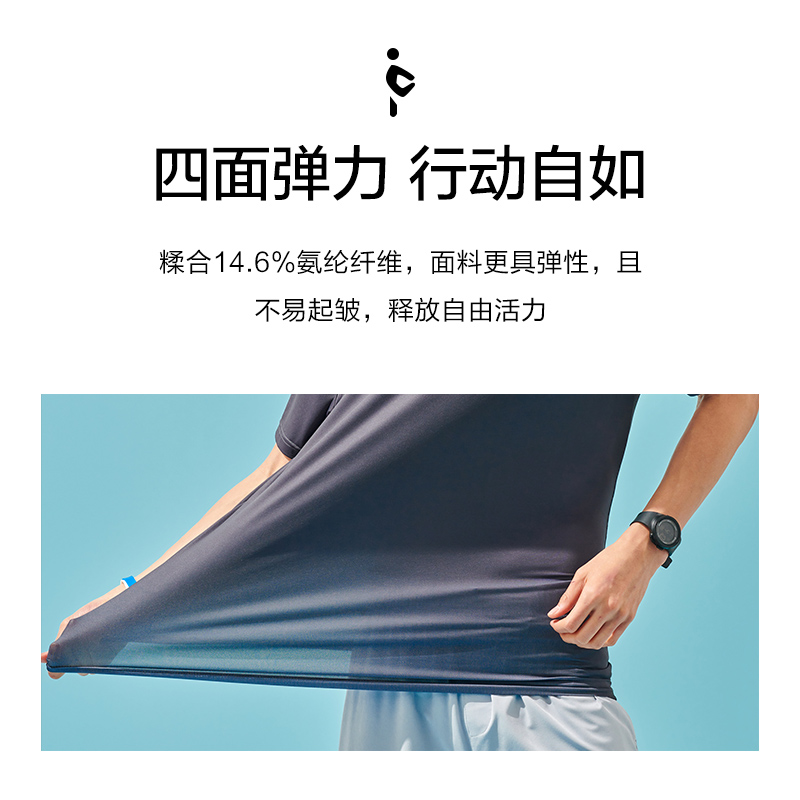 糅合14.6%氨纶纤维,涤氨消光面料,柔软亲肤,四面弹力,更舒适,吸湿排汗,领口螺纹,不易变形。男女多色可选,尺码较全。