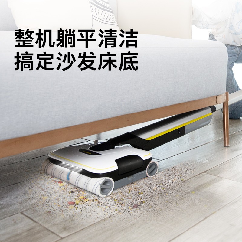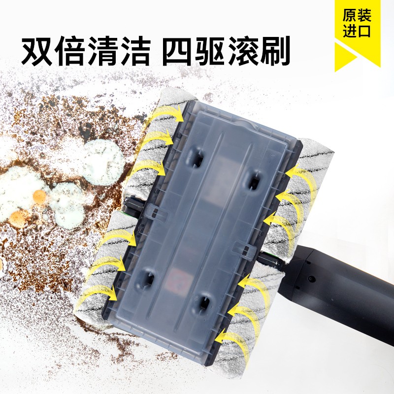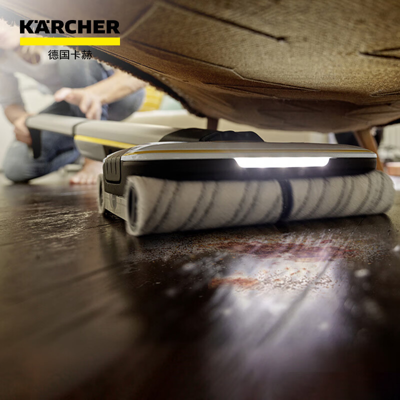卡赫FC7洗地机,采用低重心设计,手感更为轻盈,整机可以轻松躺平,方便深入沙发、橱柜、矮凳下方的低矮空间;采用中心驱动技术,有别于两侧驱动,让滚刷两侧无遮挡;内置7节锂电池,低档运行时长超过60分钟;3重智能自清洁,包括滚刷毛发自洁、清水自洁和清洁站自洁;配备两类滚刷,包括适用于木地板、瓷砖和大理石的通用滚刷,以及适用于粗糙石砖的石材滚刷;机器前方配备宽域LED灯,暗处工作也能一目了然。