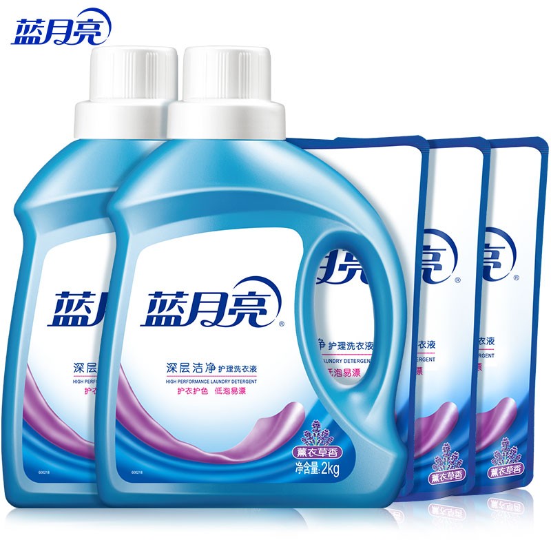 Bluemoon 蓝月亮 深层洁净护理洗衣液。活性物含量更高,遇水速溶,易漂清无残留,去污活力更强,深层去污。高效洁净因子深入衣物纤维剥离污渍到水溶液中,深层清洁。去污增效因子包裹洗落水中的污渍,只需要一点点就能解决污渍难题。温和配方安心洁净,不含磷安全环保,保护纤维和原色,同时呵护双手。创新低粘配方,遇水速溶。独特泡沫控制技术,令洗涤时泡沫量适宜,易漂清。淡雅薰衣草香,清新舒缓;衣物散发自然清香,心情愉悦。