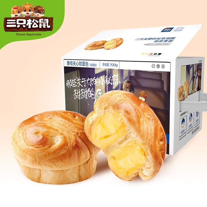 三只松鼠(Three Squirrels)这款酵母夹心软面包,配料选用小麦粉、鸡蛋、全脂乳粉等。面包松软,内馅柔滑细腻,口感甜而不腻。独立小袋包装,便于携带,开袋即食。保质期为4个月,请置于阴凉干燥处保存,避免阳光直射。