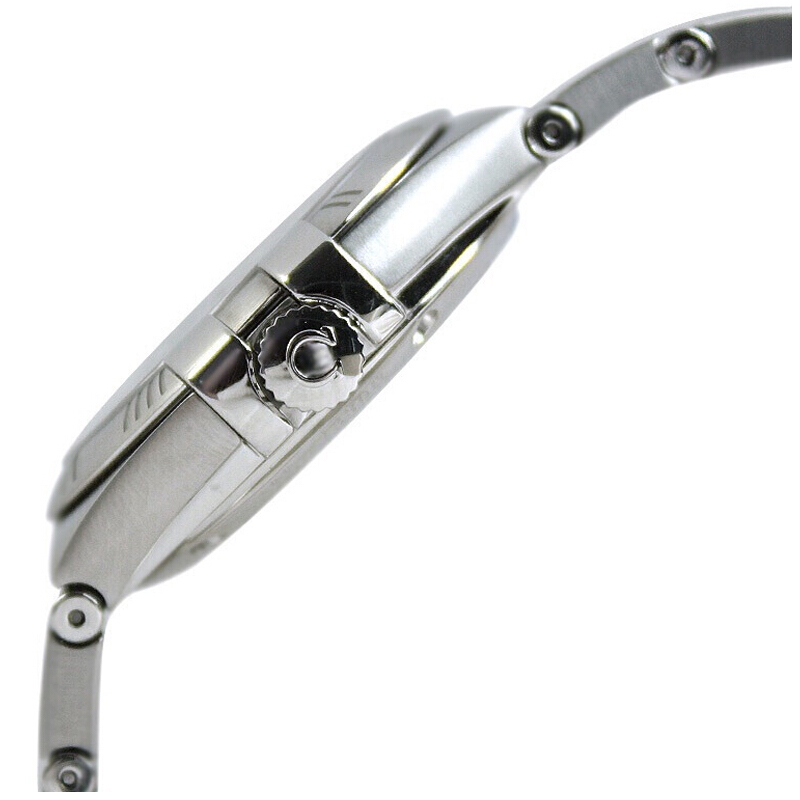 此款腕表采用饰有浮雕菱形图案的银色表盘,3时位置设有日历窗口。35毫米精钢表身配备镌刻罗马数字的精钢表圈,搭配同材质表链。