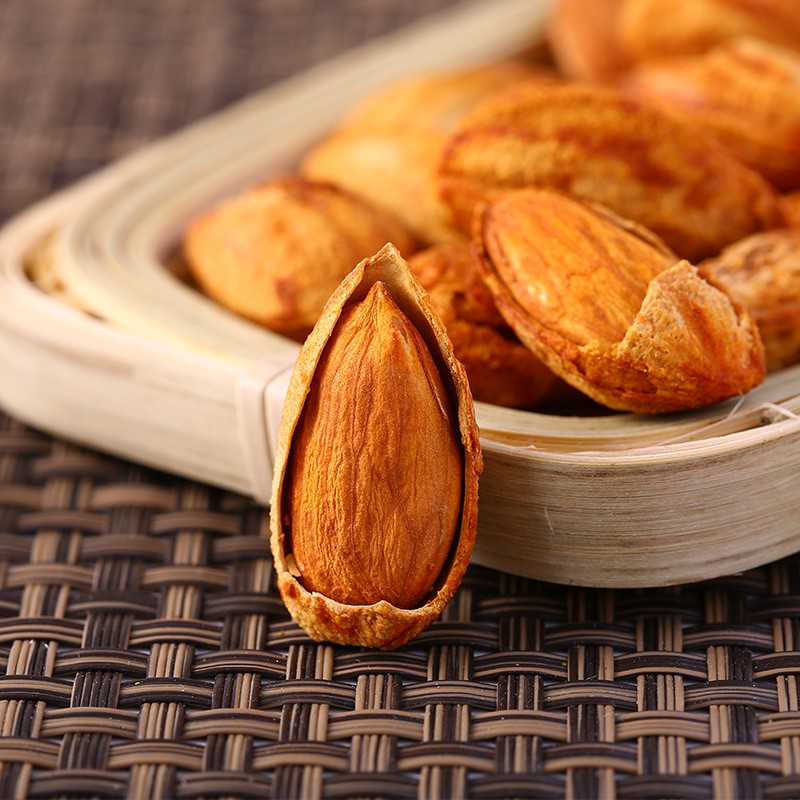 盐焗巴旦木仁,壳薄开口大,果仁饱满完整,果肉色泽金黄,壳薄,果仁饱满厚实,开口易剥。口感清香甘甜,嫩脆有嚼劲。可用作休闲零食食用。规格:100g。