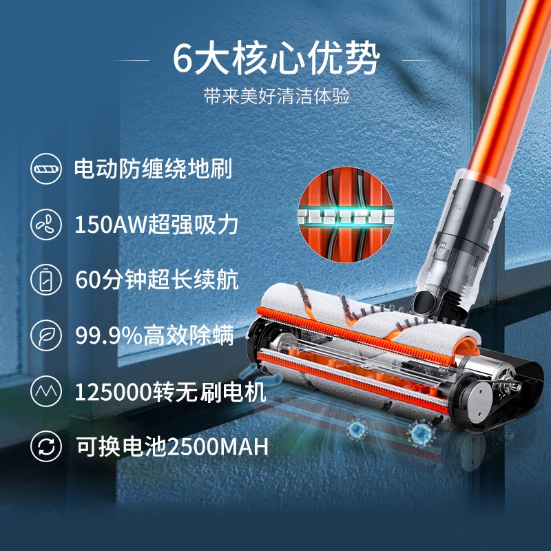 顺造 Z11 Max 手持吸尘器搭载了电动防缠绕地刷、125000转无刷电机,释放出150AW强劲吸力,拥有自主研发的三相无刷马达、毛发防缠绕、隔离式一键倒尘等专利技术。智能实时屏显,60分钟续航、一键倒尘,电动除螨刷,Multi-separation多锥分离系统,净化效率99.9%。全新两级增效多锥排布吸力无损耗,采用五重过滤体系,过滤小至0.3微米的微尘。