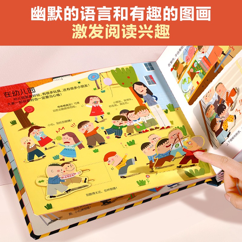 这是一册针对2-4岁孩子成长常见安全问题的互动游戏书,涉及雷雨天、地震、火灾、乘车、游泳、过马路、与陌生人接触、触电、打闹等问题。用幽默的语言和有趣的图画将儿童常会遇见的安全问题和安全常识都传递出来,根据孩子主要的生活场景归为十大类让孩子更为系统、清晰的认识在不同环境和场所中隐藏的安全隐患。让孩子在通过阅读、发现的过程中树立良好的安全意识,养成安全习惯。