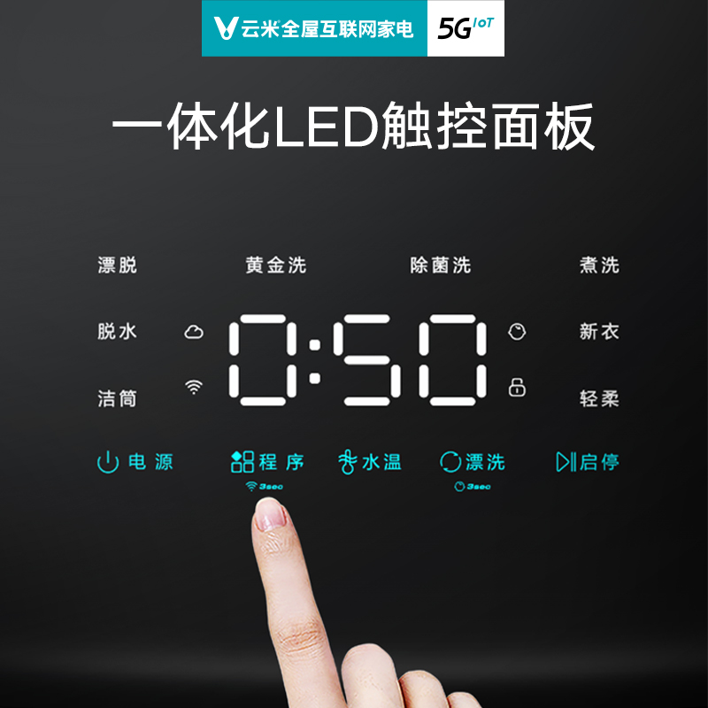 云米这款型号为WM3FH-S7A的壁挂洗衣机,采用BLDC变频电机,容量3kg,特设多种洗护模式,包括40℃黄金洗、80℃高温煮洗、新衣洗等;支持自动开门功能,省力更便捷;配备一体化LED触控面板,操控简单;支持智能筒自洁功能,有效去除残留污渍;支持APP操控,可调节洗涤程序、进行定时预约等,另外还能与小爱音箱实现智能联动。