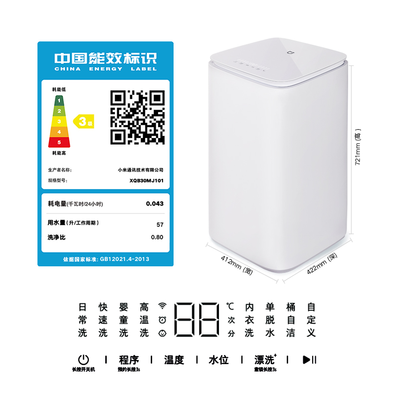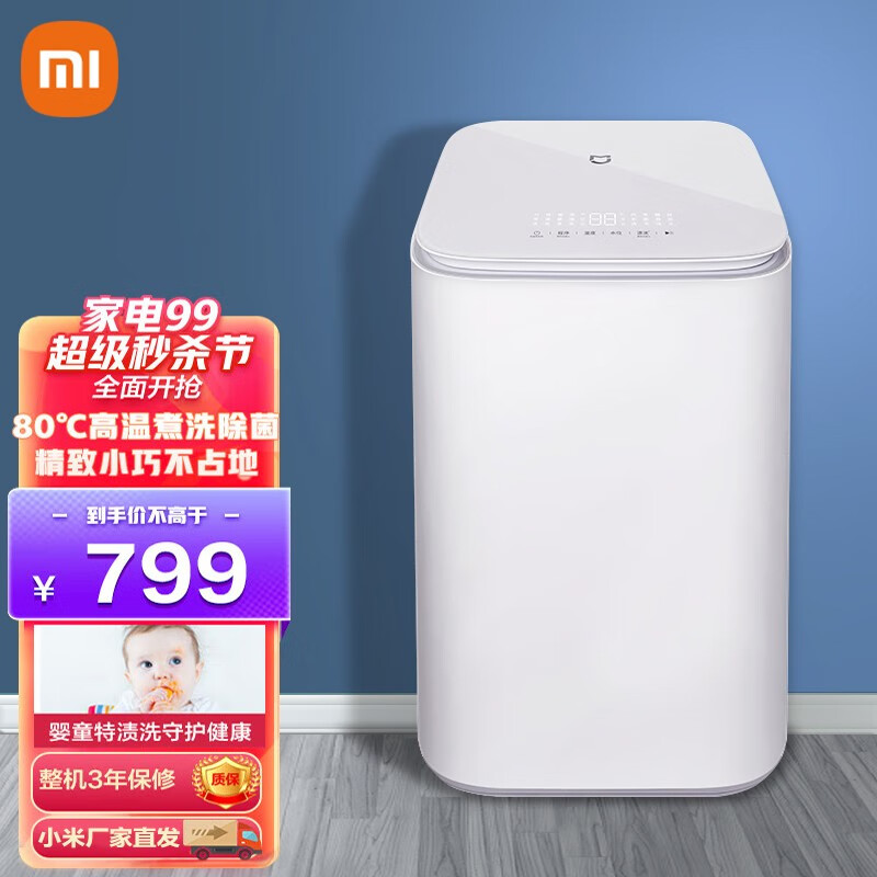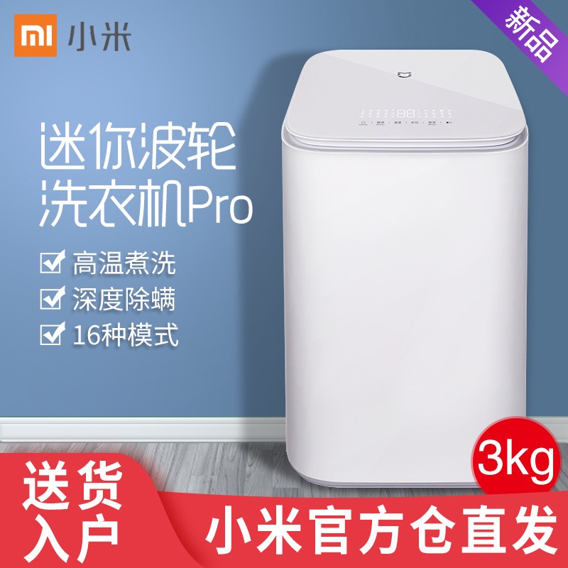 米家互联网迷你波轮洗衣机Pro,3KG容量,80℃煮洗衣物杀菌放心穿,99.9%*除菌率洁净健康新升级。高温桶自洁,快速桶风干,避免滋生细菌。洗涤噪音低至48dB,占地仅仅0.18平方米,可搭配多种居家场景。米家APP+小爱同学,洗衣也能远程语音操作。
