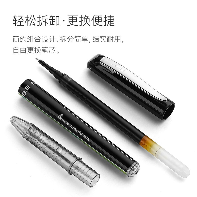 PILOT 百乐 BX-GR5-BG 中性笔,拔帽式的笔盖中顶部其实藏着一个小小的弹簧保护盖,更好地保护了笔头,第一笔就可流畅书写。恰到好处的笔夹打开角度,方便插夹携带,笔握为透明,可观察墨水使用情况,防滑纹设计有利减缓手心出汗笔身安全环保材质。