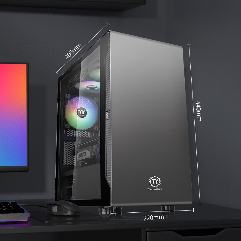 启航者A1支持MATX/ITX主板,CPU散热器限高172mm,显卡限长340mm(无前风扇时),电源限长160mm。前置120mm*3风扇位,上置140mm*2风扇位,后置120mm*1风扇位,支持240水冷排。配备3.5英寸*2以及2.5英寸*2,共4硬盘位。顶部附有可拆卸防尘网,侧面磁吸式钢化玻璃板,整机尺寸为406*220*440mm。