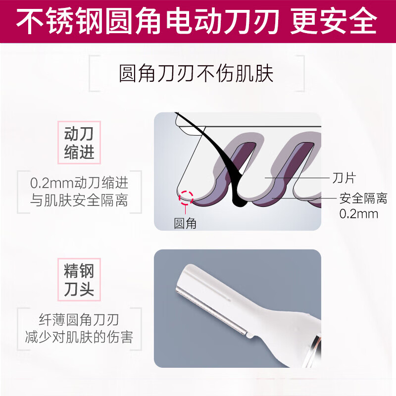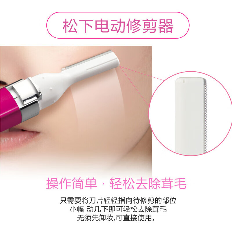 松下 ES-WF30 电动修眉器采用不锈钢圆角电动刀刃,新手也可以安心使用,机身小巧,易于收纳,适合外出携带,便捷又好用,附带替换刀头、眉梳和脸刃,除了修眉,这款电动修眉刀还可以修剪整脸的小绒毛。