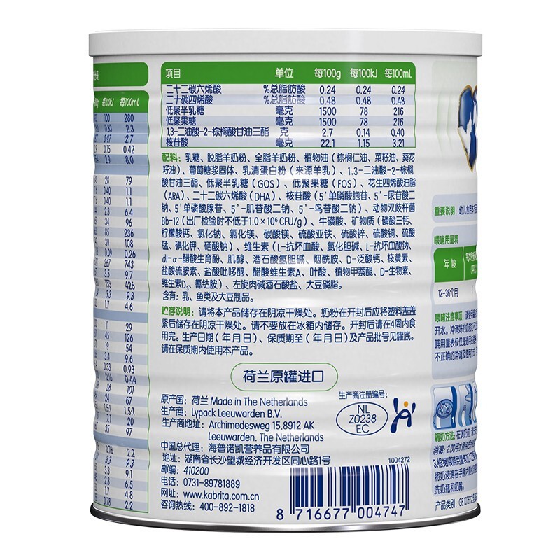 当前的位置: 首页 > 今日值得买 > 佳贝艾特(Kabrita)悦白幼儿配方羊奶粉 3段(1-3岁婴幼儿适用)400克(荷兰原装进口)