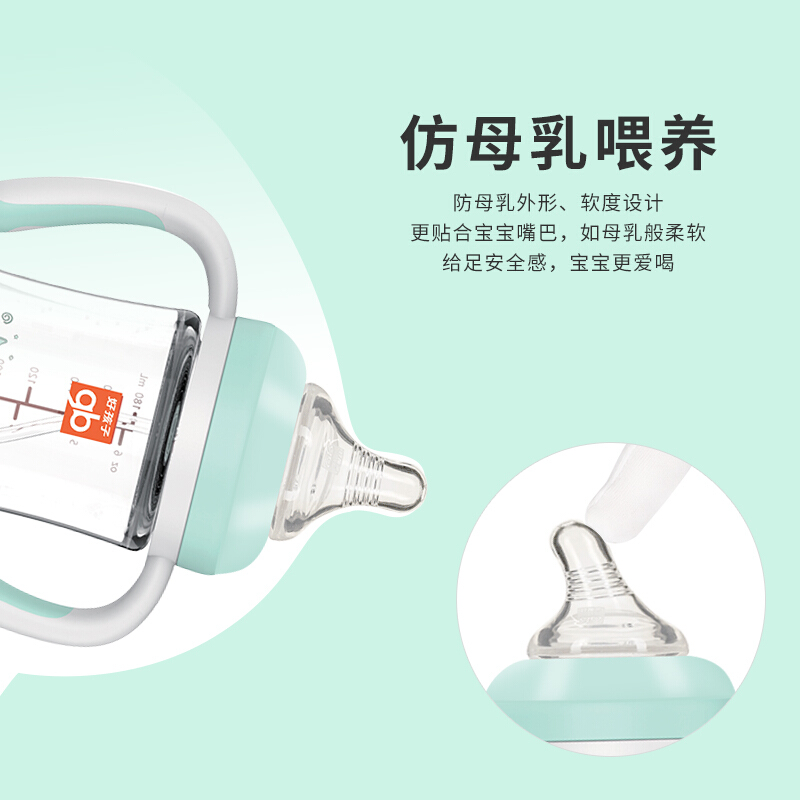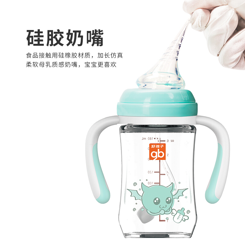 好孩子是知名的母婴产品,旗下产品线丰富包括婴儿推车、安全座椅等出行用品、童车玩具、辅食棉品、哺喂用品和餐椅等、湿巾纸尿裤、清洁洗护和童装内衣等。这款婴儿奶瓶,小饿魔系列,玻璃材质,耐高温消毒,持久耐用,硅胶奶嘴,质感柔软。