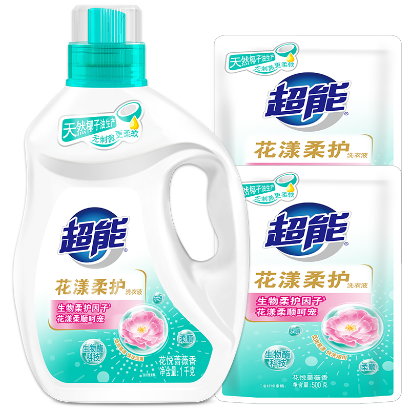 当前的位置: 首页 > 今日值得买 > 超能 洗衣液1kg+500g*2补充装 家庭机洗手洗套装 花漾柔护 持久留香 生物柔护因子