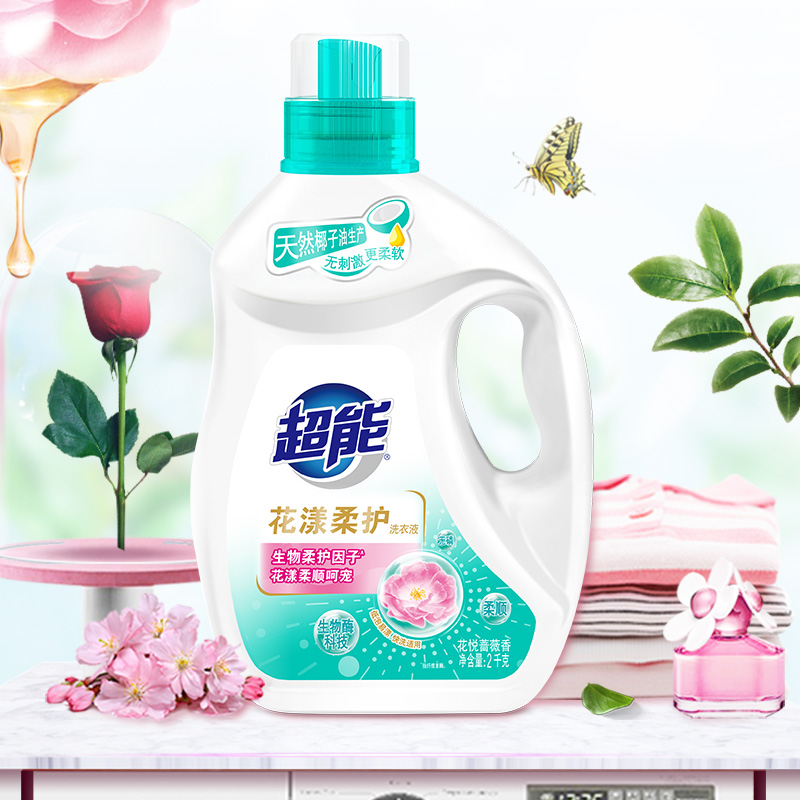 添加生物柔护因子,洗后衣服柔顺舒适,贴身衣物和宝宝衣物也适用。生物酶科技,深入衣物纤维,定向瓦解污渍,深层洁净。低泡易漂,低泡设计,易漂易清,适用快洗程序。花悦蔷薇香,洗后散发宜人花香,仿佛徜徉浪漫花海,悠然自得。