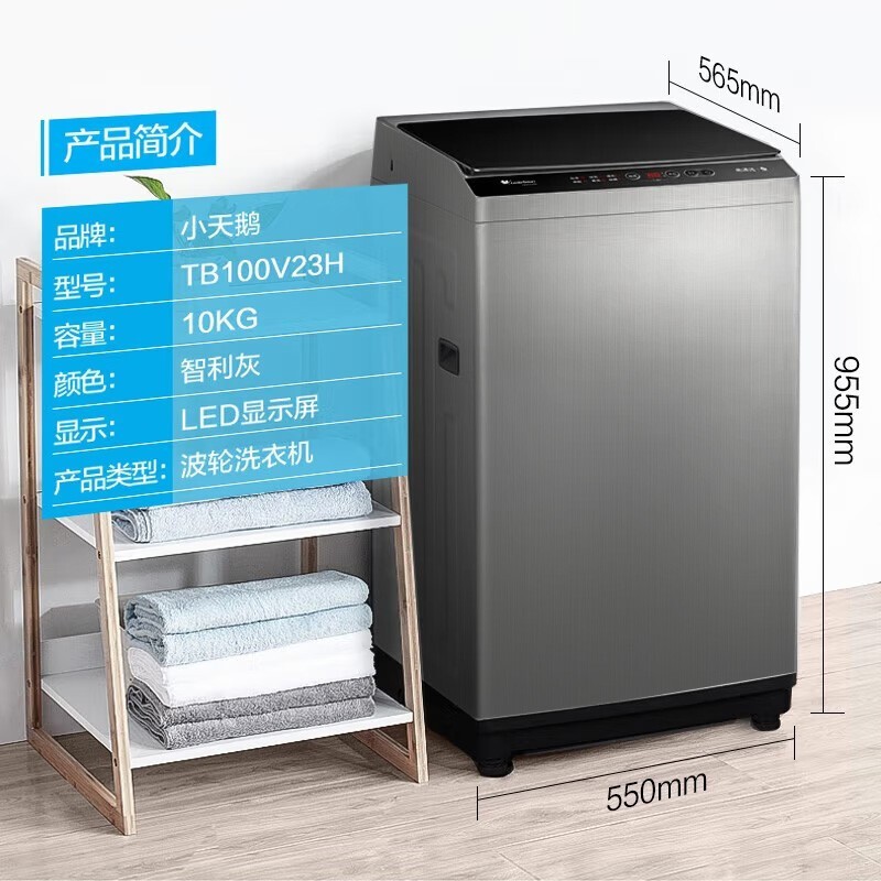 小天鹅TB100V23H 10公斤波轮洗衣机拥有智能免清洗功能,无需手动清洁内容,避免二次污染。还有深层除螨功能,可清除藏匿在衣物中的螨虫。支持15分钟快洗,省电省时节能。支持9小时预约,可以提前设置,洗衣更高效。这款洗衣机达到国家2级能效,洗净比0.8。