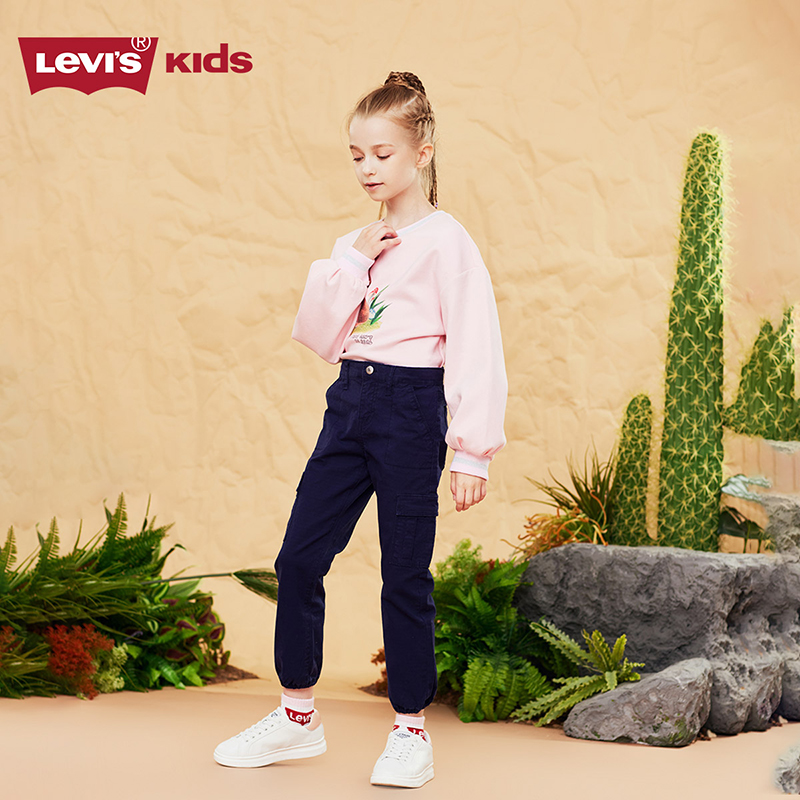 ~Levi's 女童长裤,松紧裤腰、裤脚,舒适服帖,穿脱便利。经典的迷彩印花图案,具有层次感。小巧的旗标logo标志点缀,彰显品牌个性。