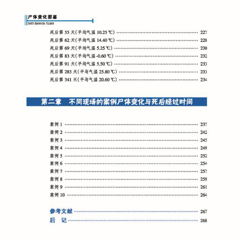 《尸体变化图鉴》是陈禄仕教授及其团队数十年来锲而不舍地对法医学尸体变化研究的成果。主要内容是通过观察、分析尸体的形态学变化与时间的关系,即通过研究尸体形态学的变化所表现出来的现象,推测出死者死后经过时间(死亡时间)。内容翔实丰富,为本领域的研究提供了宝贵的资料及数据,确立了一些尸体现象随时间变化的观察方法及判断标准,对法医工作者和相关学科技术人员也具有重要的参考及应用价值。具有适用性、创新性,可以说《尸体变化图鉴》的问世对我国法医学的发展是一突出贡献。