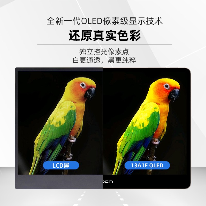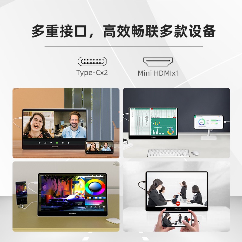 INNOCN 13A1F系列采用OLED面板,呈现更真实色彩。207万自发光像素,带你一眼进入全新视界。百万级对比度,沉浸体验纯粹的黑与极致的白。10bit色深带来10.7亿色画面,确保画面自然无断层,无论是会议展示还是宣讲方案,都可精准还原色彩信息,轻松get内容情绪,助提案一臂之力。与此同时,INNCON A1F系列拥有100%DCI-P3色域,超广泛的色域覆盖能力,在追剧时可以享受影院级的观影体验。依靠OLED硬件滤蓝光的特质,长时间使用也不必担心眼睛酸痛。 接口方面,INNOCN A1F系列便携器配备双Type-C线缆,1根HDMI信号线。无论是连接笔记本还是苹果设备都超级方便。双屏显示,也能大幅提升操作效率。相同时间,更高质量,让时间更值钱。同时Type-C充电线能与手机充电器混用(30W PD快充),携带出行无需再装电源适配器,一个充电器即可兼顾手机与便携的显示器的电能供给。机身所提供的miniHDMI插口,可适配XBOX、PS5、Switch等市面主流的游戏主机。配合OLED面板1ms的超快响应时间,让游戏画面从此不再拖影和卡顿。