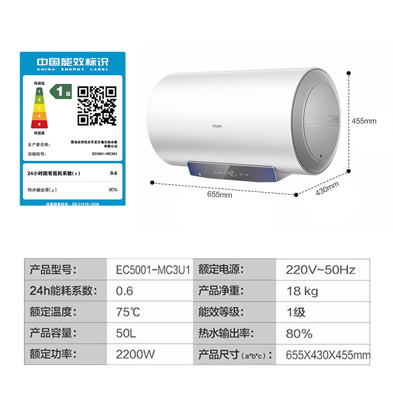 当前的位置: 首页 > 今日值得买 > 海尔(Haier)电热水器家用储水式一级能效恒温省电APP智能速热上门安装卫生间预约洗澡机MC3 50升【1-2人】