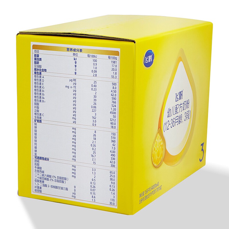 飞鹤奶粉是国内比较早期的奶粉企业,自家专属牧场,北纬47°黄金奶源产地,奶粉更适合中国宝宝体质。飞鹤 飞帆经典系列配方奶粉,特别添加OPO结构脂,5种核苷酸,叶黄素等元素,呵护配方,满足宝宝成长需求,3段奶粉适合1-3岁宝宝食用。
