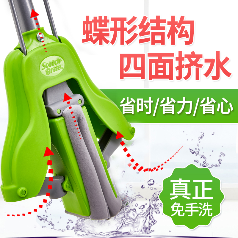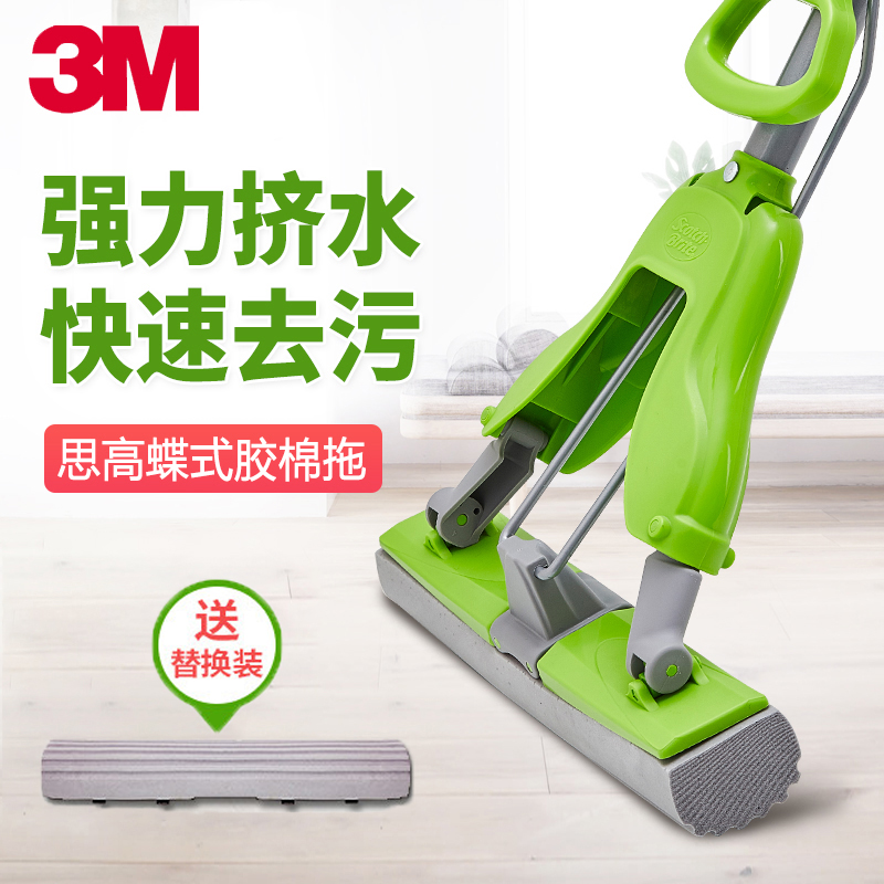 3M XY003847130 胶棉拖把 2头 绿色,3个特点打动你,蝴蝶式挤水,充分彻底,胶棉材质,清洁效率高,每一个细节都是精选材质,坚固耐用,安全放心。