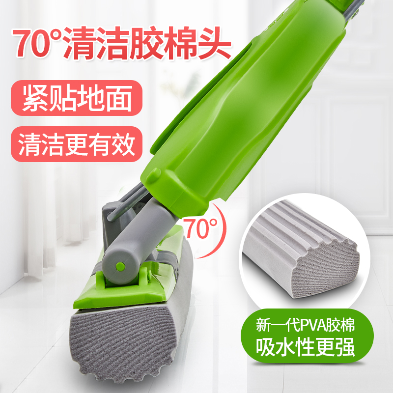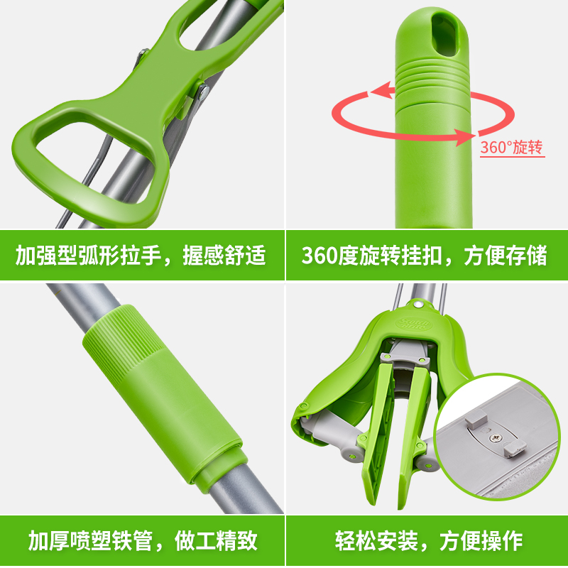 蝴蝶式挤水,特别设计,挤水彻底,拖把头70度接触角,清洁面积大,清洁更省时省力。