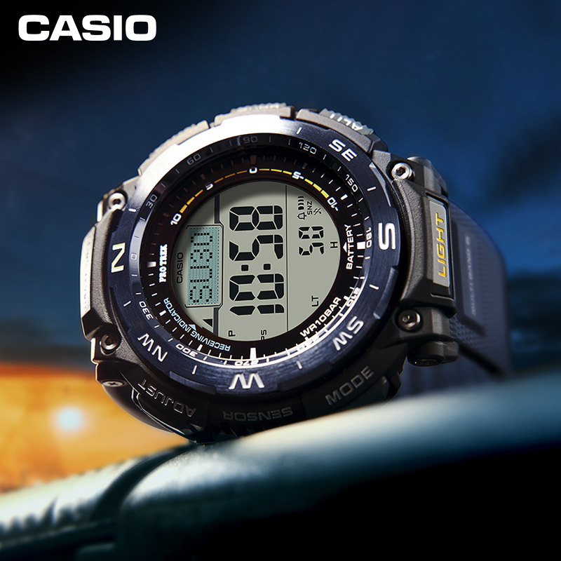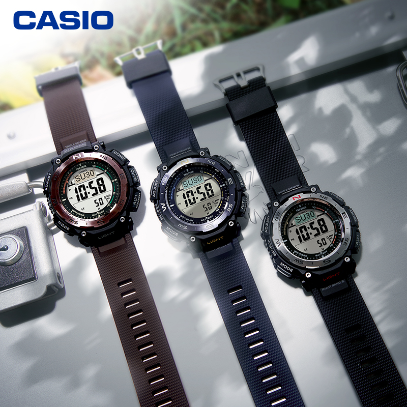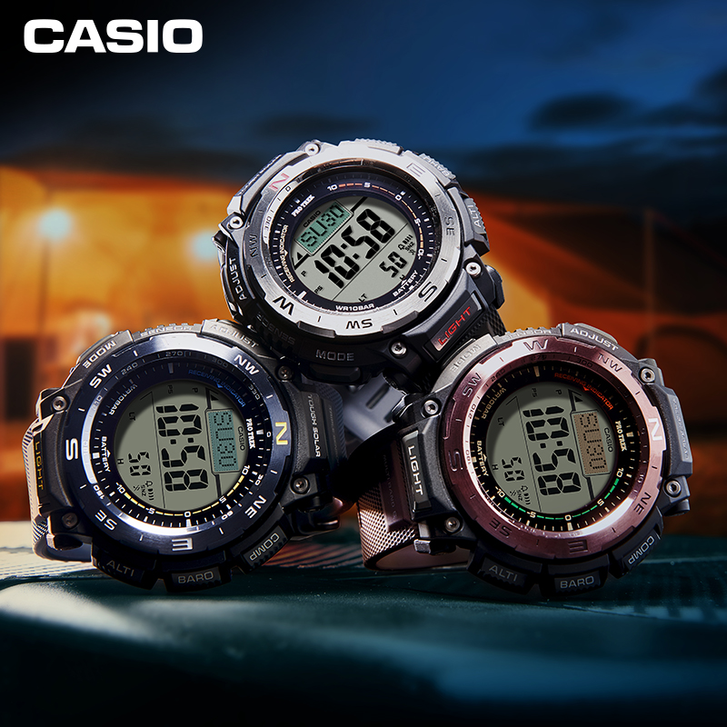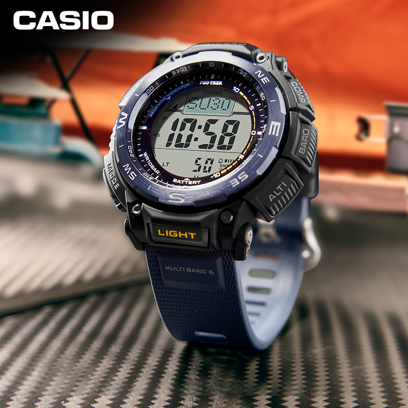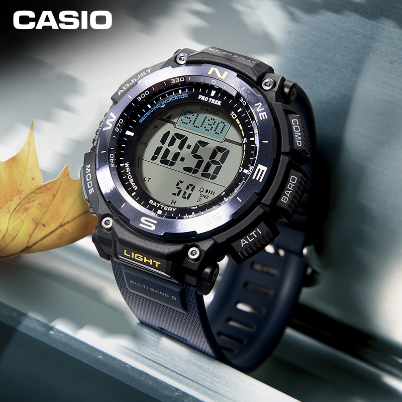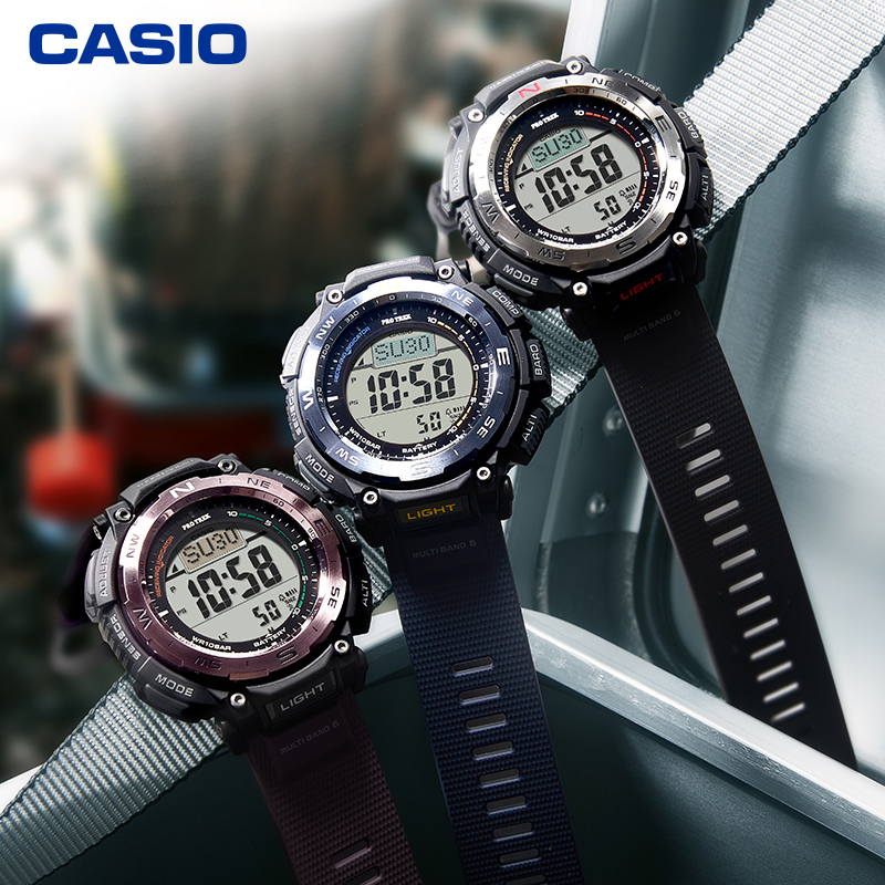 PRW-3400系列表款具备六局电波、太阳能动力、高亮度LED照明等功能,配备气压、温度、方位以及高度测试感应器,为户外运动提供强大的功能保障。此系列表款的一大特色在于它的表圈,表圈的每一面都经过精心抛光处理,并且表圈顶部、侧面,不同的位置采用不同的抛光工艺,从而体现手表的价值感。此外,手表的颜色易于户外穿搭。