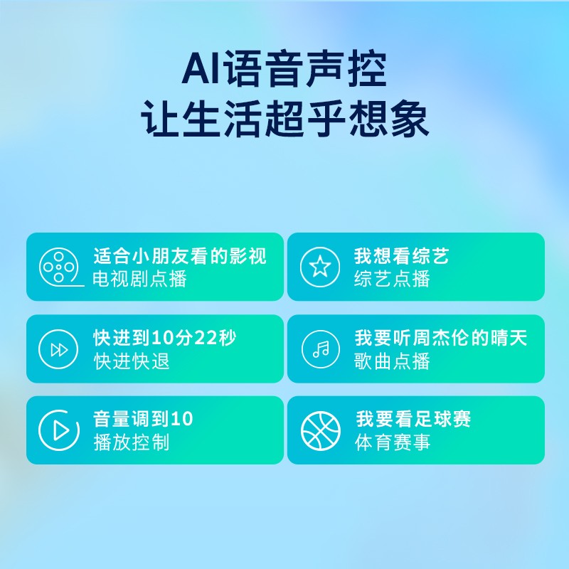 2+16G内存;护眼:光学防蓝光和光强突变保护,健康护眼;外观:金属全景屏更高屏占比;画质和音质:4K HDR,杜比解码与独立大音腔,天籁之音如临其境;特色功能:一键投屏 一键加速 电视派语音功能
