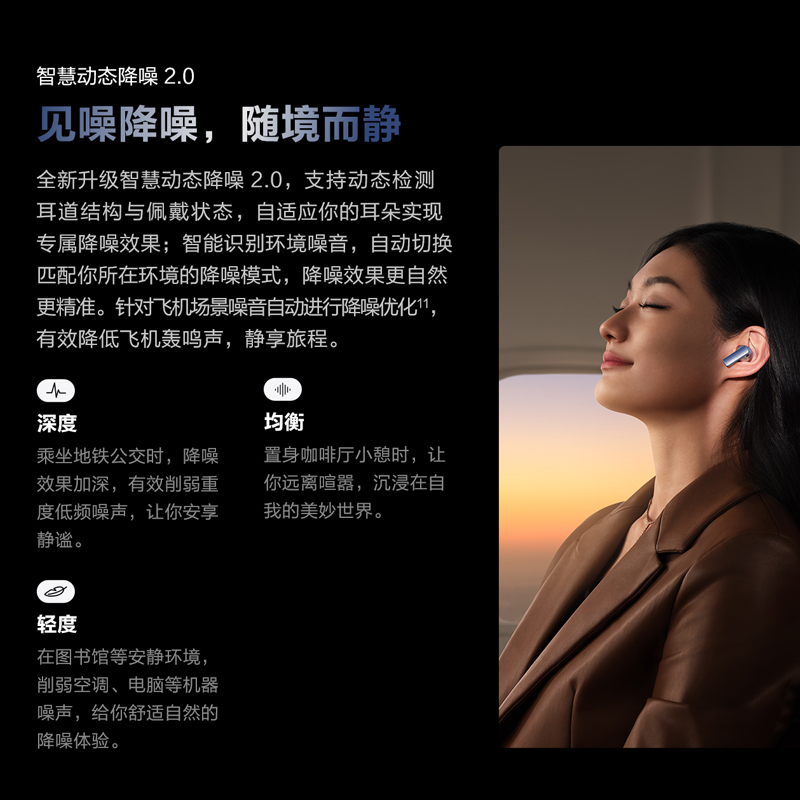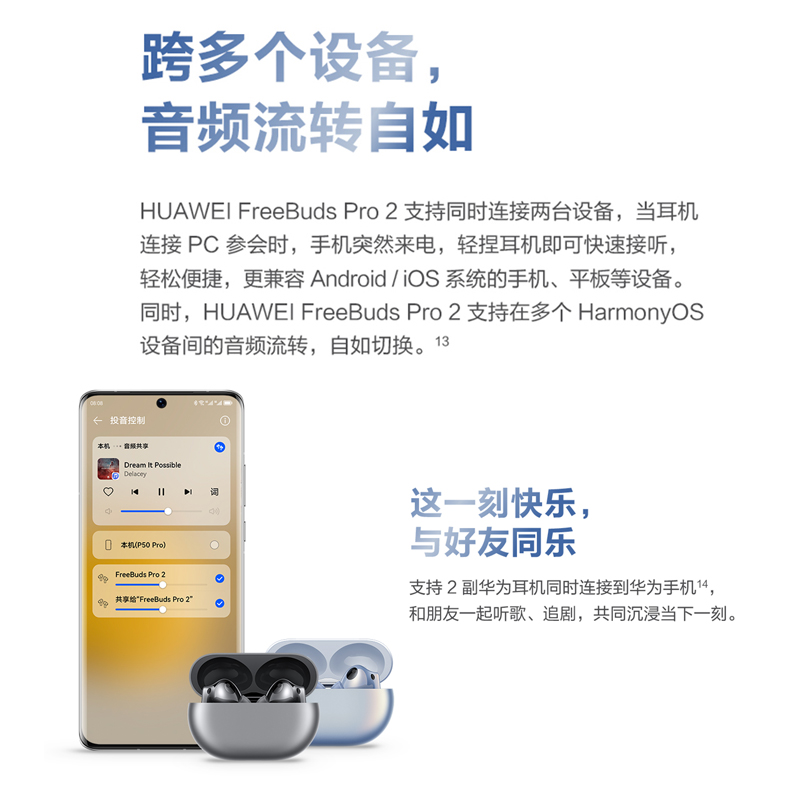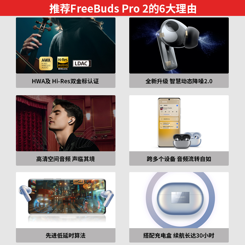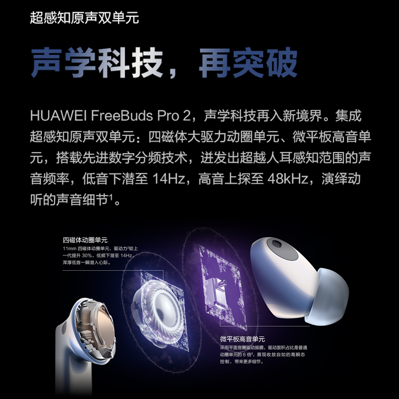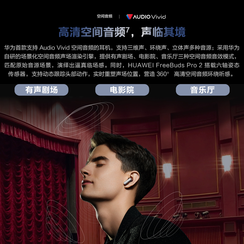 华为首款支持Audio Vivid空间音频的耳机,支持三维声、环绕声、立体声多种声源;集成超感知原声双单元,四磁体大驱力动圈单元,低音下潜至14Hz,高音上探至48kHz,全新升级三重实时听感优化算法加持,智能计算并优化听音效果,与帝瓦雷联合调音;支持 IP54级抗水溅,可从容应对汗水、雨水;在游戏时可以开启 智能游戏低时延模式,音画同步;搭配充电盒整机续航可达30小时,支持手机或者平板反向充电。