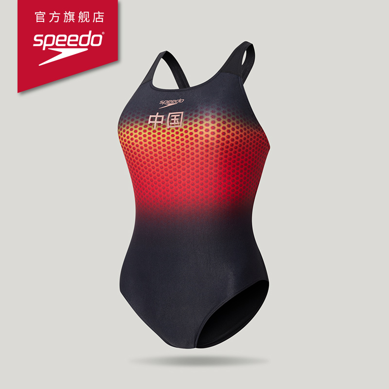 SPEEDO 速比涛 梦之队荣耀共享版 女士连体泳衣,复刻中国游泳队专属鲨鱼皮竞赛泳衣元素,胸前质感玫瑰金“中国”。面料采用Endurance+高能抗氯材质,紧致贴合,持久耐用,经典竞赛款背带设计,肩部发力更加灵活。
