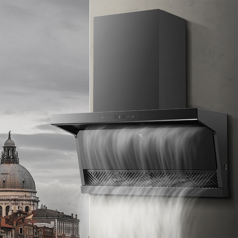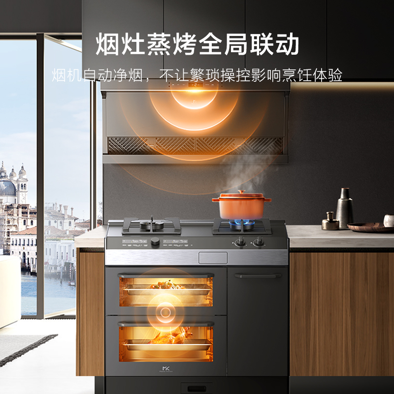 MASTER KITCHEN M7系列 CXW-140-MK03X7 顶吸式吸油烟机采用双烟口布局,120°鹰翼导烟,兼具低位近吸和高位拢烟,确保无油烟逃散,380mm深度能够轻松嵌入吊柜,更加美观的同时拒绝碰头烦恼。搭载BLDC变频电机,支持自感应变频巡航,实时感知公共烟道压力,自动调整风压,最高可达1000Pa,提供25m3/min澎湃吸力,大火爆炒也能保持厨房净味。支持烟灶联动,开火自动启动烟机,烹饪过程中自动检测油烟变化,智能匹配风量档位,还能与灶具的定时烹饪搭配,熄火自动进入3分钟延时关机。支持一键自清洁,110℃高温蒸汽溶解油污,实现99.1%的洗净率和99.99%的灭菌率。三重降噪优化,运行噪音低至53dB,强劲不吵人。搭载HarmonyOS系统,手机碰一碰即可快速配网,还支持手机远程和语音操控,并与其他智能家居产品联动。