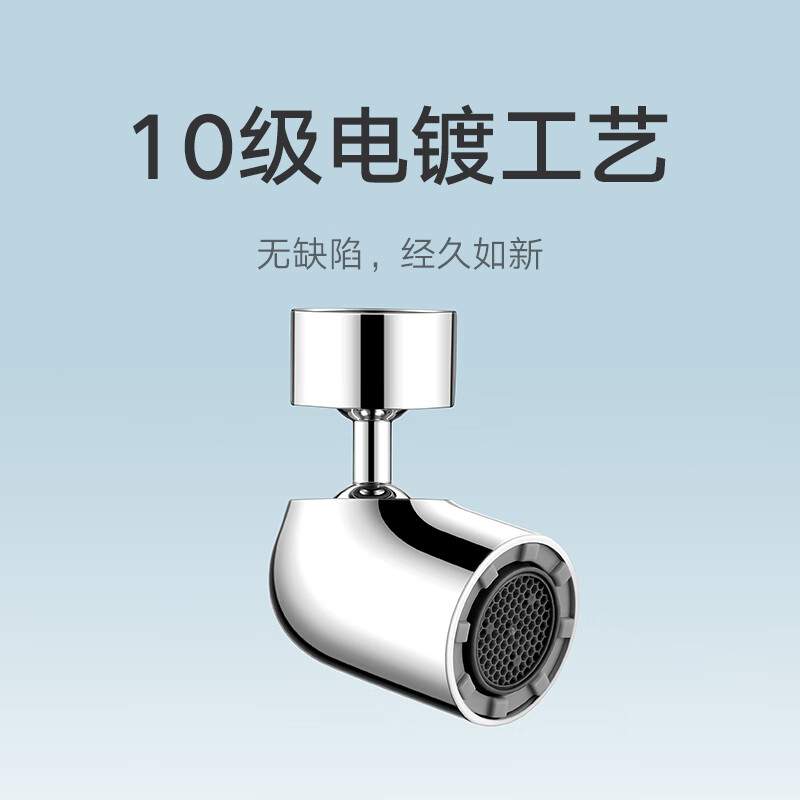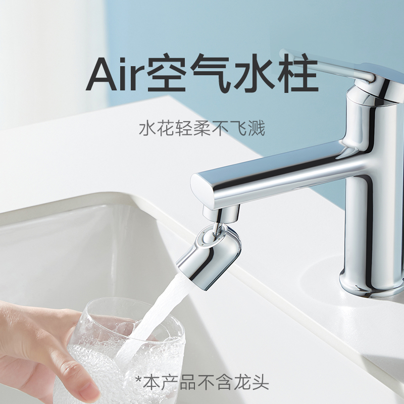 此款10级电镀工艺,久用亮丽如新,59黄铜接头,强大抗压防爆性能,更耐磨损;5种转接头,匹配安装无压力;精巧圆弧回旋设计,化解尖锐直角,AIR空气水柱,即使水况不佳也可呈现完美出水形态,水花不飞溅,双球头直球旋转增压设计,水压不打折,720°超大角度旋转,万向出水,便捷冲洗台盆,集成防堵塞圆头滤网,有效过滤沉淀物与杂质颗粒,拆卸方便,整芯清洁安心洗漱。