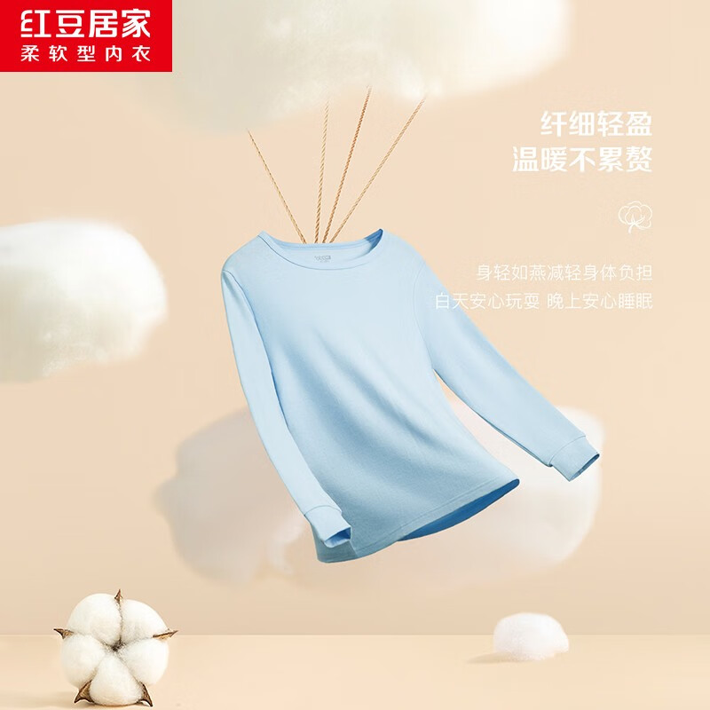 Hodo Men 红豆男装 儿童秋衣秋裤套装,采用40S精纱,进口精梳机器制造,布面紧密度高且光整,加以柔软后整处理,致密柔软,拼缝采用四针六线无痕工艺。
