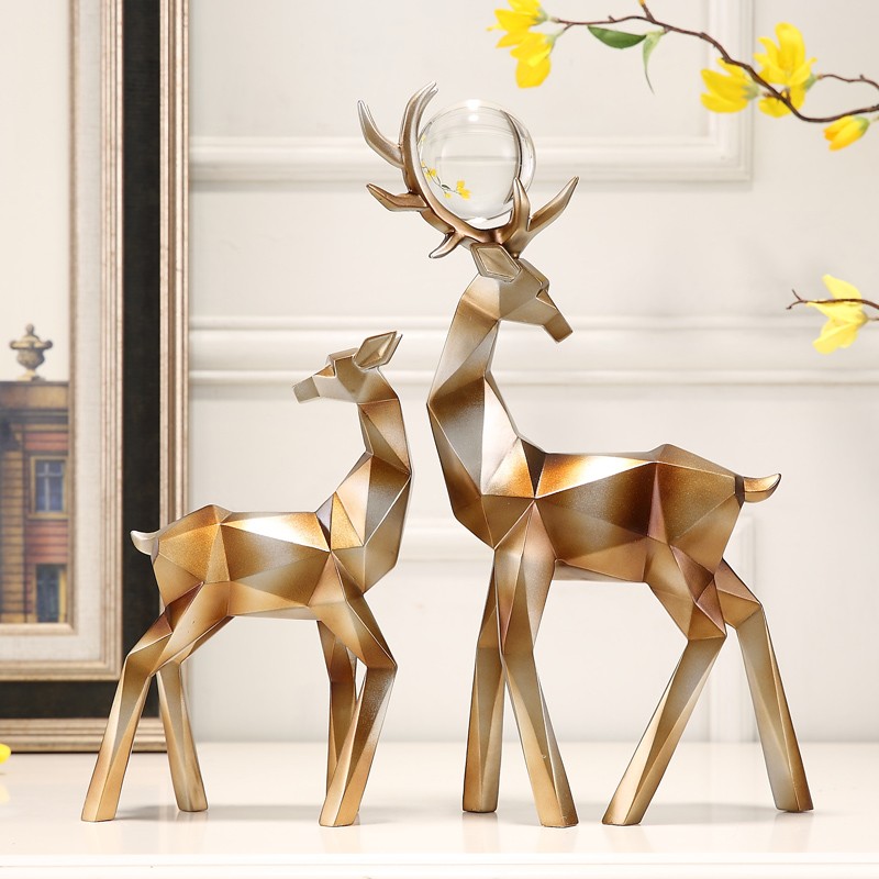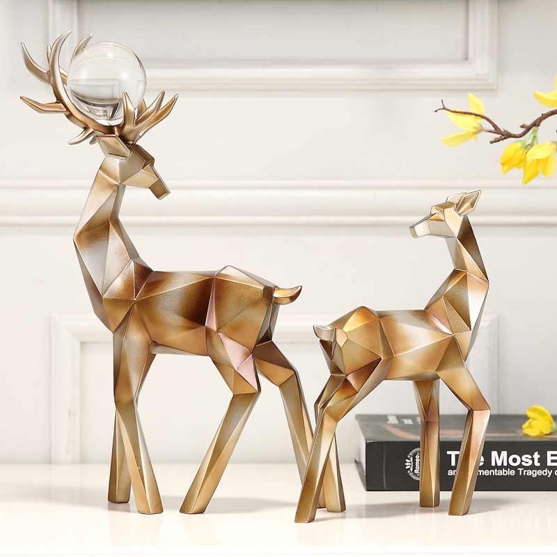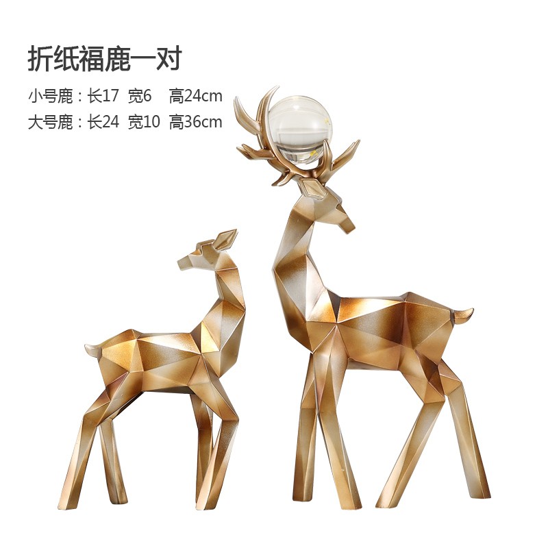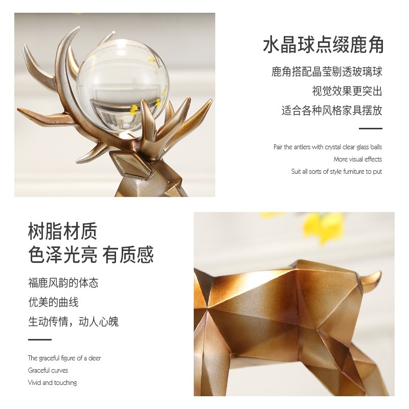 折纸祈福鹿,折纸几何造型,鹿造型形象生动, 树脂制品,实心,重量十足,鎏金色跟黑白色可选,搭配透明玻璃球,整体造型,简约大气,摆放电视柜,酒柜 ,玄关都会让人眼前一亮,乔迁结婚送礼也非常适宜。