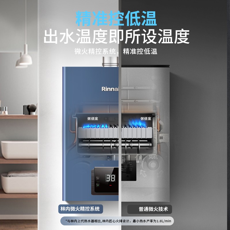 林内京鱼智能系列燃气热水器具备有包括婴儿洗、宠物洗在内多达9个细致控温模式,实现精确控温,保证不同人群对于洗浴热水温度的需求。机内还支持语音、APP控制功能,用户可以直接使用语音,或通过手机APP对热水器的工作状态进行更精细的控制;该系列燃气热水器采用下置变频风机而不是传统的上置风机设计,抗风能力更强、与氧气混合更充分,散热环境也更优良,直流变频风机具备风机补偿技术,风量大抗强风能力强;主机还内置电辅热加热功能,当气温低于一定程度后自动开启加热,防止因管道结冰导致的损害;正压燃烧系统使得燃气与氧气混合更充分,燃烧更别易产生一氧化碳,保护用户安全。