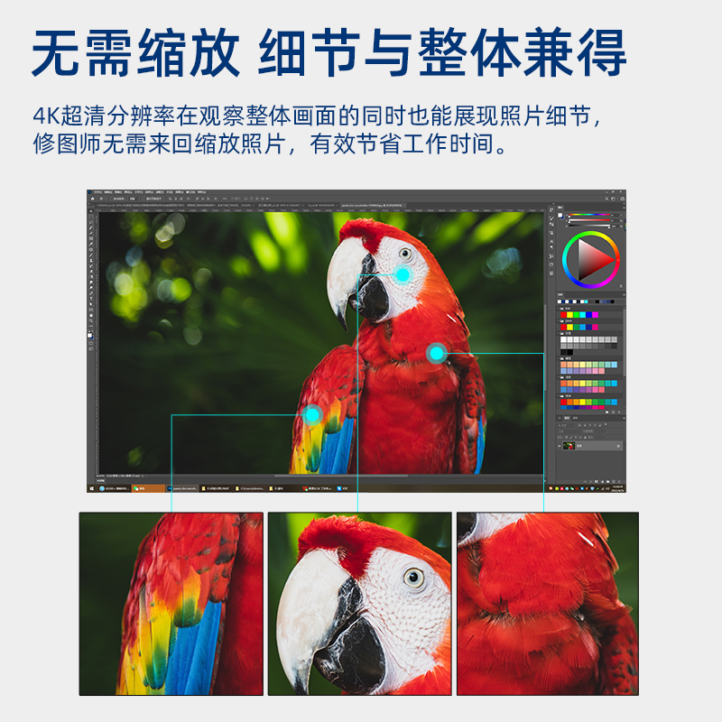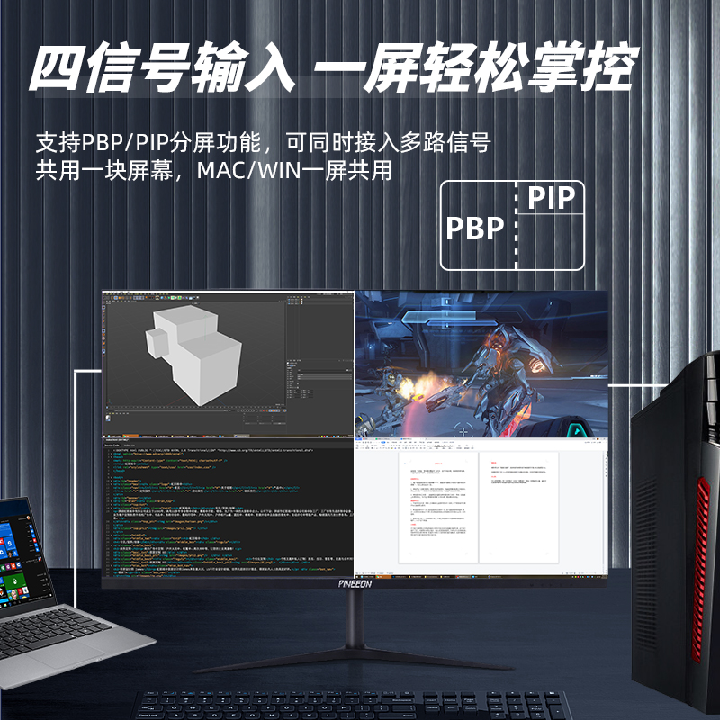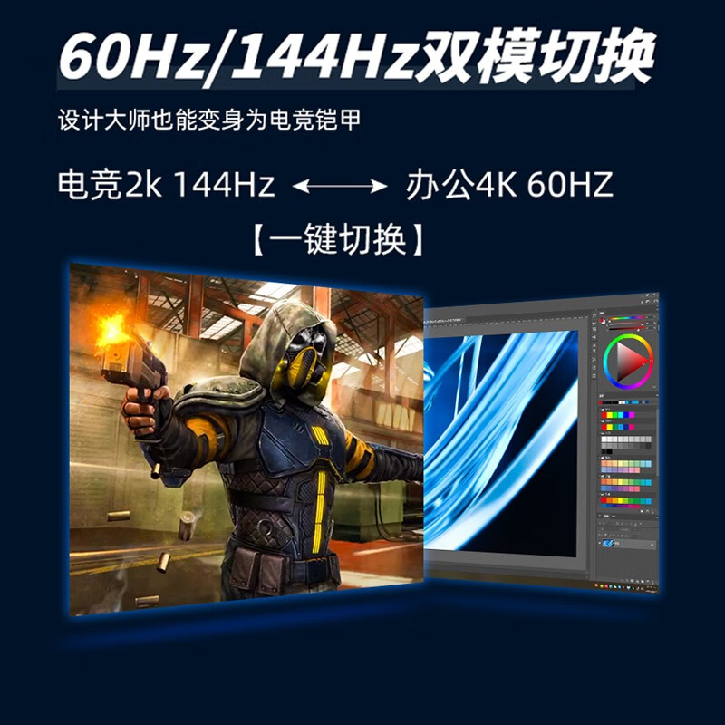 松赏竞显此款显示器采用27英寸IPS面板,4K高分辨,搭载HDR技术,拥有106%sRGB+82%NTSC色域,Dalta E≤2,拥有10.7亿色,支持PBP/PIP分屏功能,可同时接入多路信号共用一块屏幕,支持100*100mm壁挂。